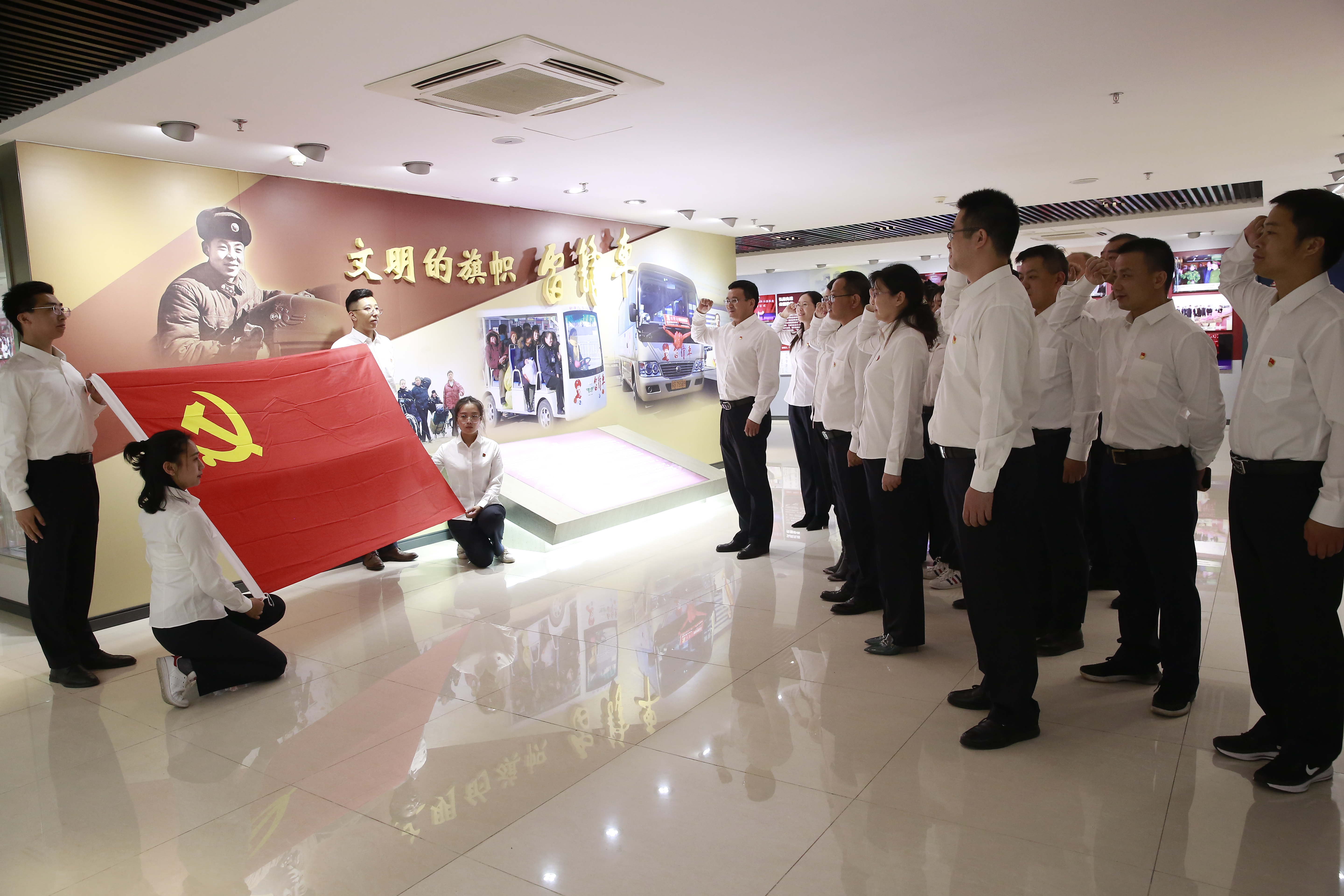 随后,交通博鱼app最新版下载,博鱼(中国)党员干部前往连云港市雷锋车纪念馆参观学习。在雷锋车事迹陈列馆里,大家认真聆听讲解员的介绍,边走边听,通过实物、图片、雕塑、场景详细了解到几代“雷锋车”手“宁愿自己千般苦,不远旅客一时难”的先进事迹。参观结束后,党支部、董事长吴心航带领全体党员干部重温入党誓词,全体党员面对鲜红的党旗,郑重举起右手,再一次向党做出庄严的承诺,重忆当年的坚定信念和入党初心,汲取澎湃的进取激情和为党奋斗的精神力量。