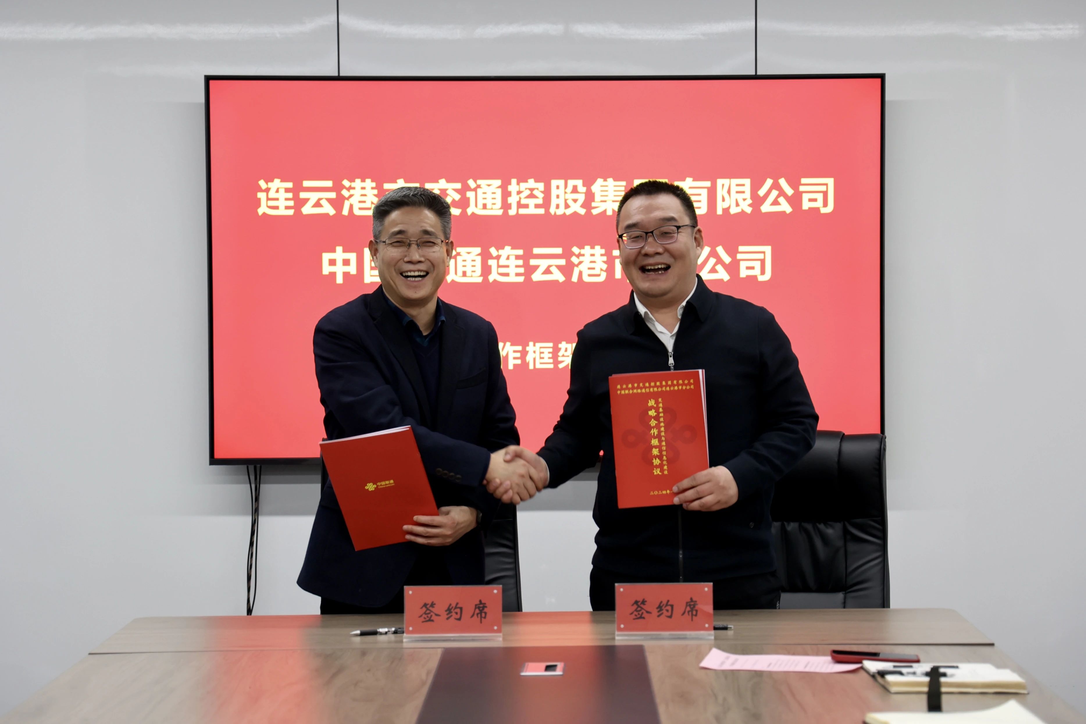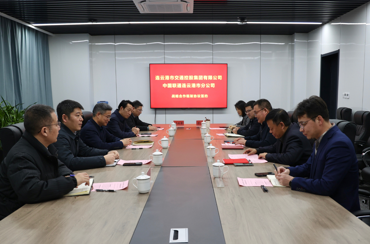 1月25日下午,市交通控股博鱼app最新版下载,博鱼(中国)与中国联通连云港分公司举行签约仪式。中国联通连云港分公司党委书记宋文豪,副总经理张周华等;市交通控股博鱼app最新版下载,博鱼(中国)党委书记、董事长仲伟涛,副总经理王中永等出席签约仪式。