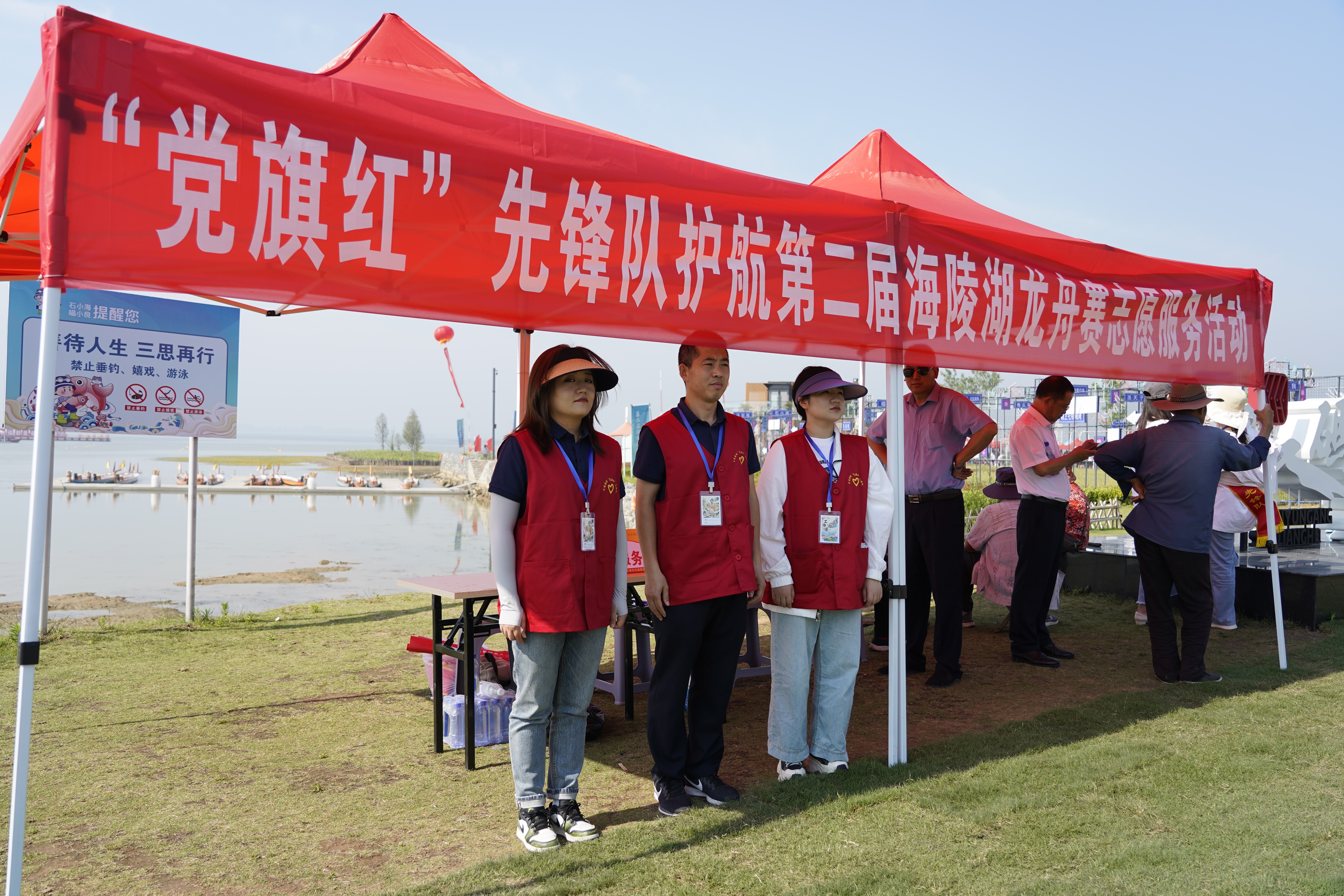 赛龙舟,迎端午。6月22日,2023年第二届海陵湖龙舟赛开赛,为保障本次活动有序开展,交通博鱼app最新版下载,博鱼(中国)组织“党旗红”先锋队在石梁河龙舟赛活动期间开展志愿服务活动,全天候驻扎在现场一线,全力保障活动顺利举办。
