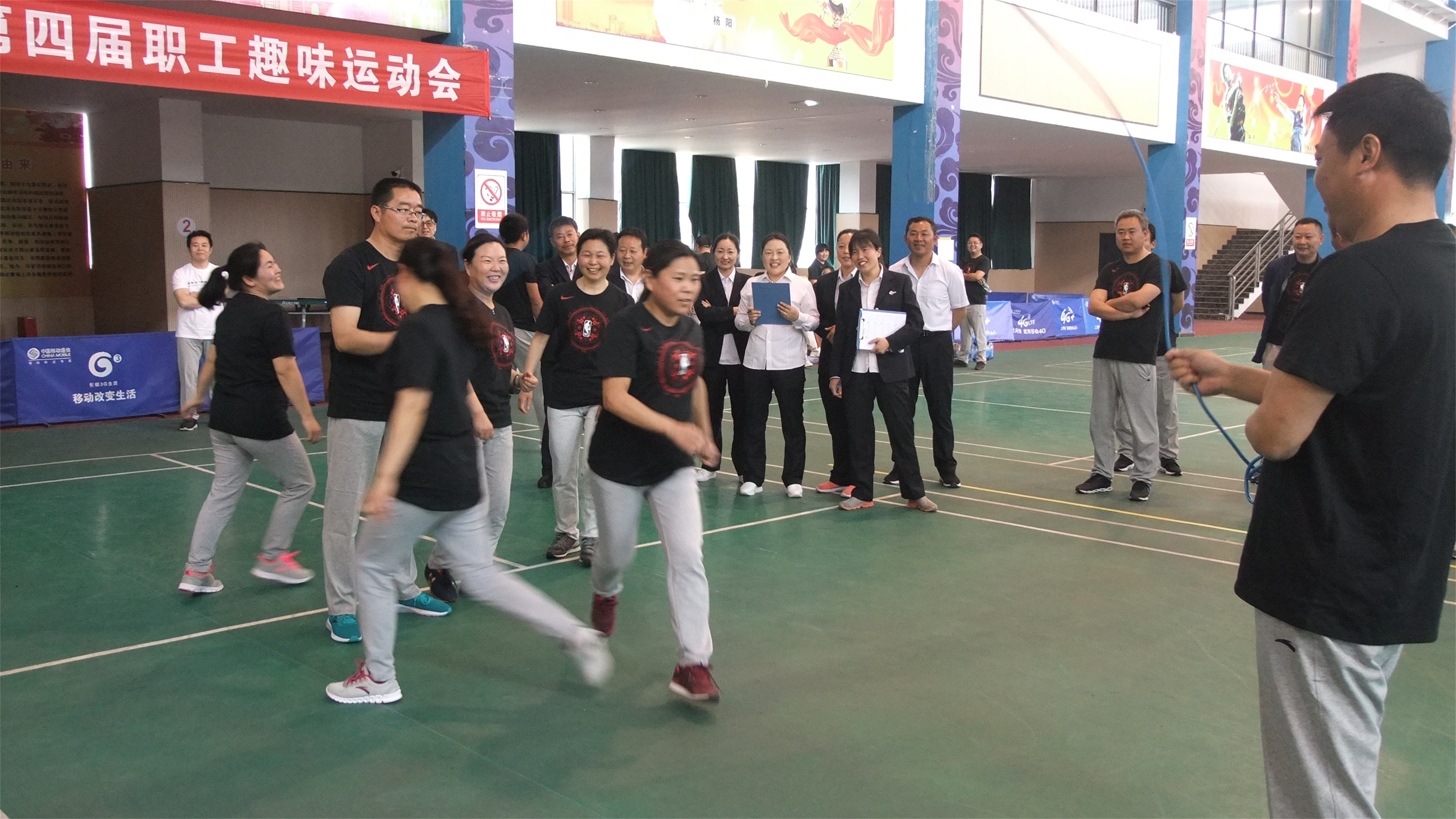 为庆祝“五·一”国际劳动节,丰富公司职工的文娱生活,增强公司广大职工的集体意识和团队意识,提升公司职工身体素质,推进企业文化建设,经过认真筹备,428日下午,灌南公司工会牵头举办的第四届职工趣味运动会开赛。本次职工趣味运动会共有6支代表队、60名选手参加集体跳绳、足式保龄球、男女混合袋鼠跳接力、企鹅漫步接力、无敌风火轮、巨人脚步六个项目的比赛。