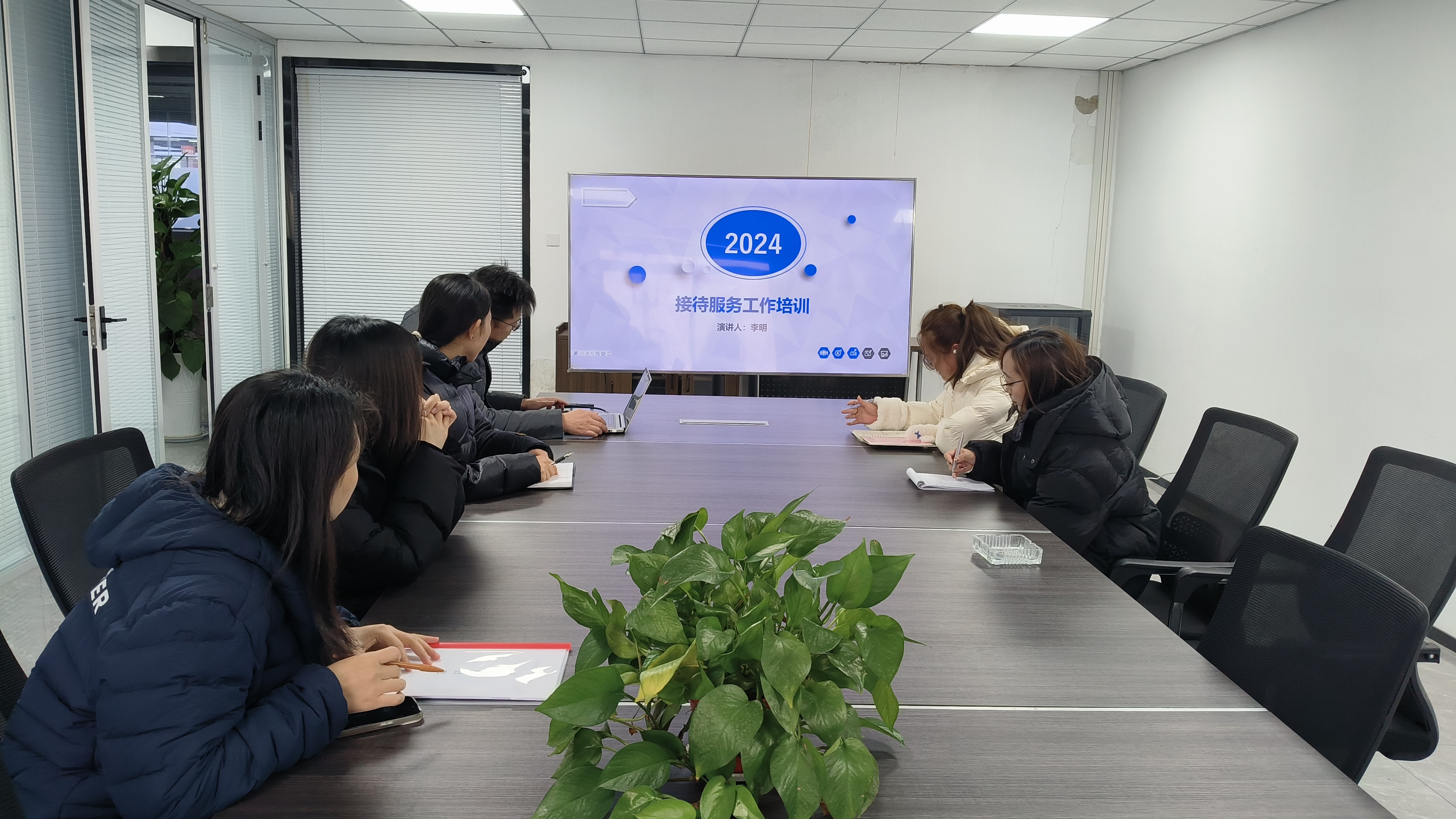 为了确保每一位进入新能源汽车综合展厅的顾客都能享受到专业、热情、周到的服务,展厅销售经理李明于2024年12月13日上午进行培训接待服务工作培训。