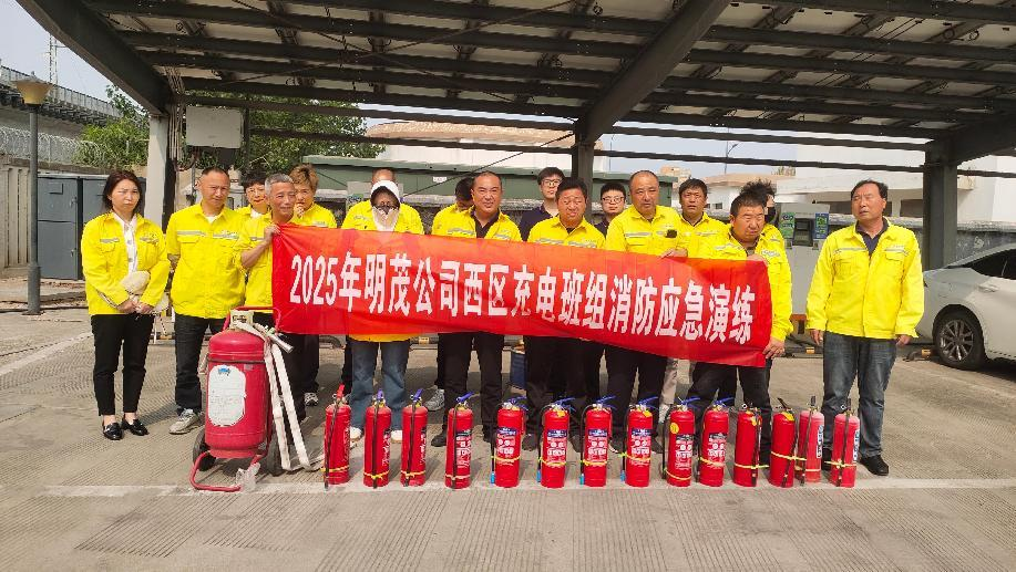 为积极响应2025年全国第24个安全生产月“人人讲安全、个个会应急——查找身边安全隐患”主题要求,5月22日下午,明茂公司西区班组在江化路充电站组织开展消防实战演练,通过模拟突发火情场景,全面检验员工应急处置能力,强化安全生产责任落实。
