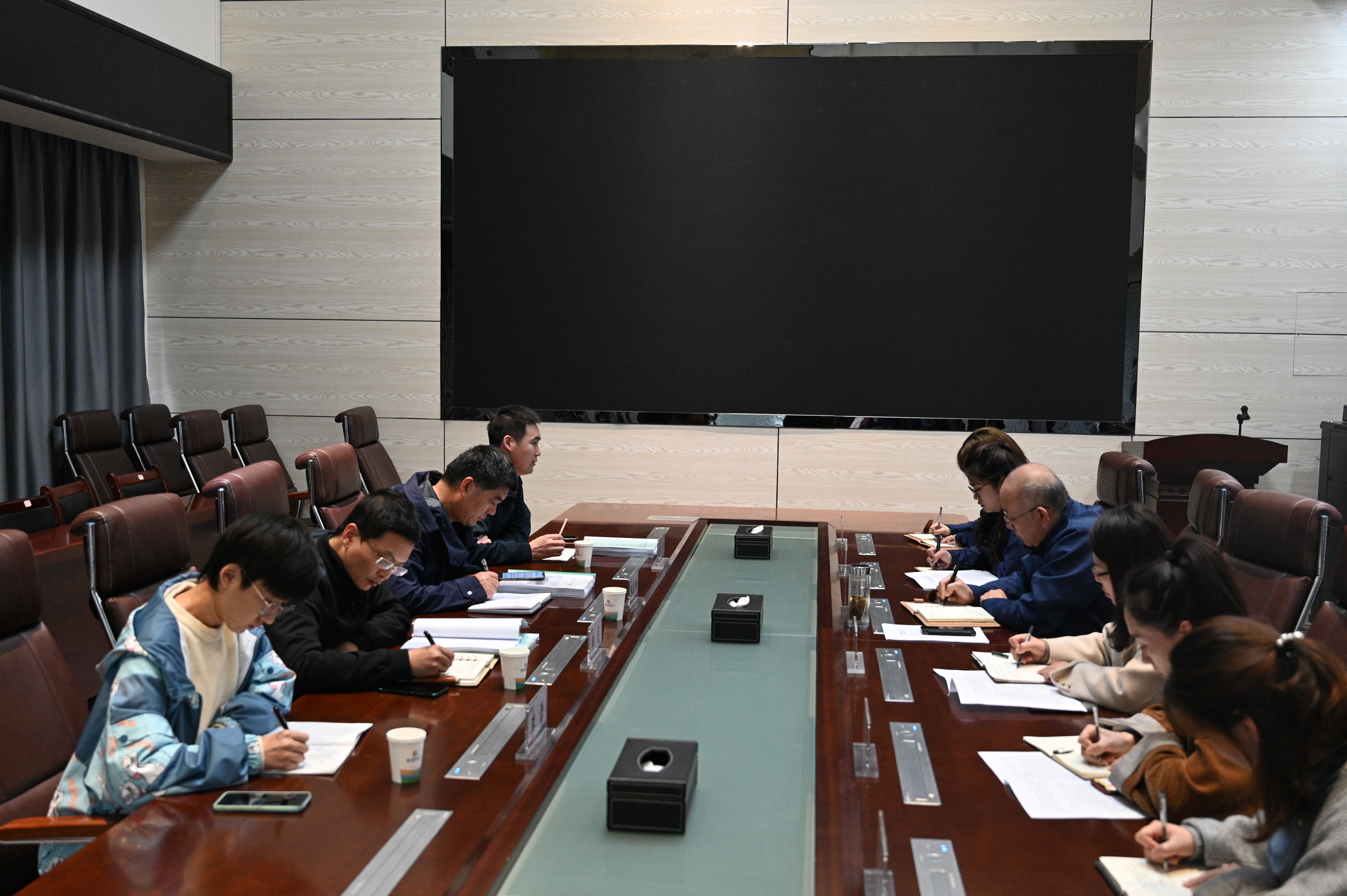 随后,明茂公司在视频会议室召开“三星”级档案工作座谈会。会上,明茂公司党总支副书记王冰对公司“三星”档案创建工作情况作初步汇报。张处、王处指出了明茂公司档案工作存在的细节问题并进行分析与总结。