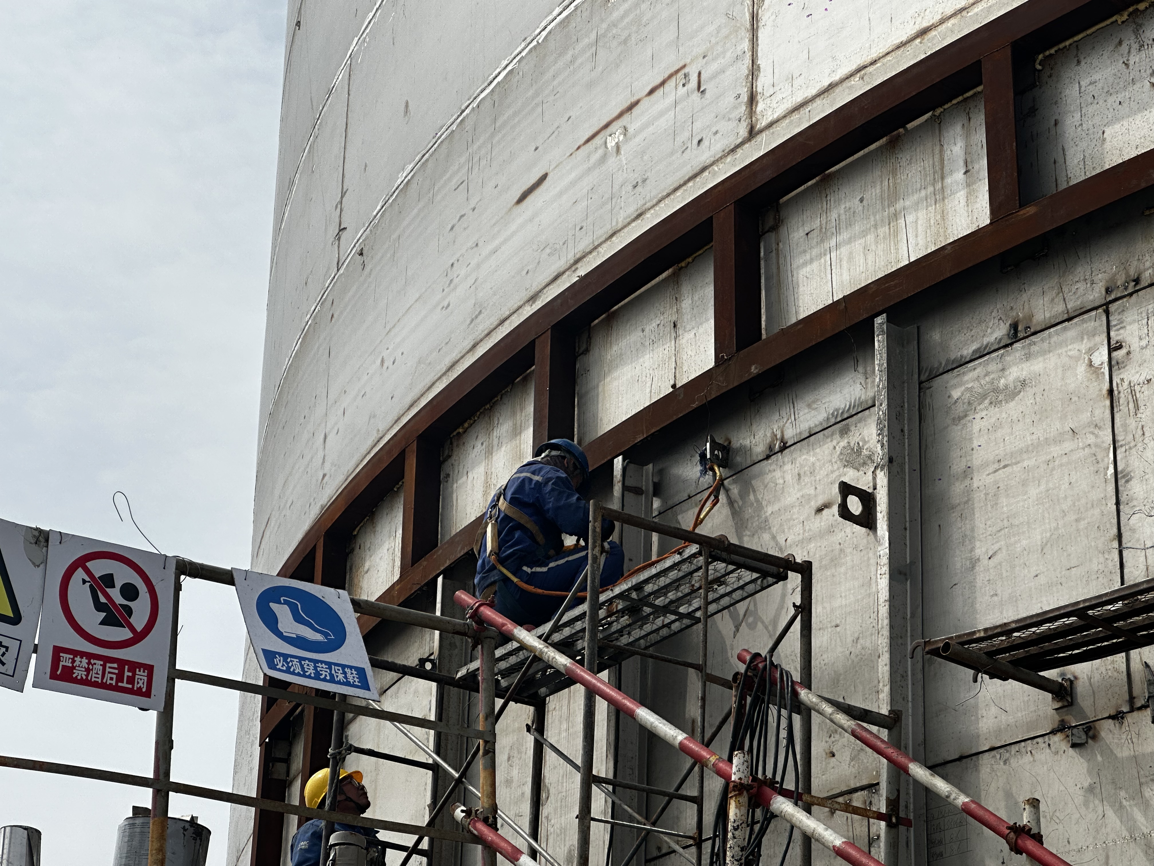 3月28日上午,随着外容器最后一张钢板焊接完成,交通控股博鱼app最新版下载,博鱼(中国)权属物流博鱼app最新版下载,博鱼(中国)LNG储配站项目20000m3LNG储罐成功封罐,储罐安装工作全部完成,标志着LNG储配站项目正式进入了冲刺收尾阶段。