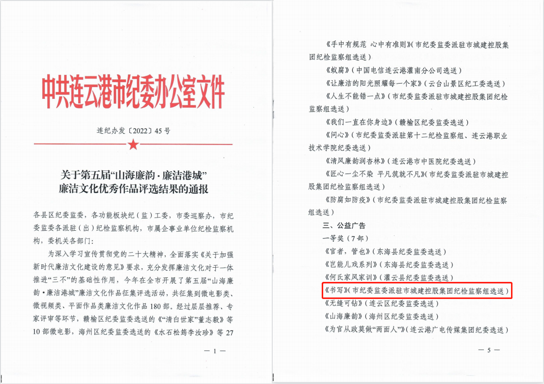 为深入学习宣传贯彻党的二十大精神,全面落实《关于加强新时代廉洁文化建设的意见》要求,今年连云港市纪委在全市开展了第五届“山海廉韵·廉洁港城”廉洁文化作品征集评选活动。公交博鱼app最新版下载,博鱼(中国)积极组织职工投递作品参选,其中王琰创作的平面作品《书写》荣获公益广告类一等奖。