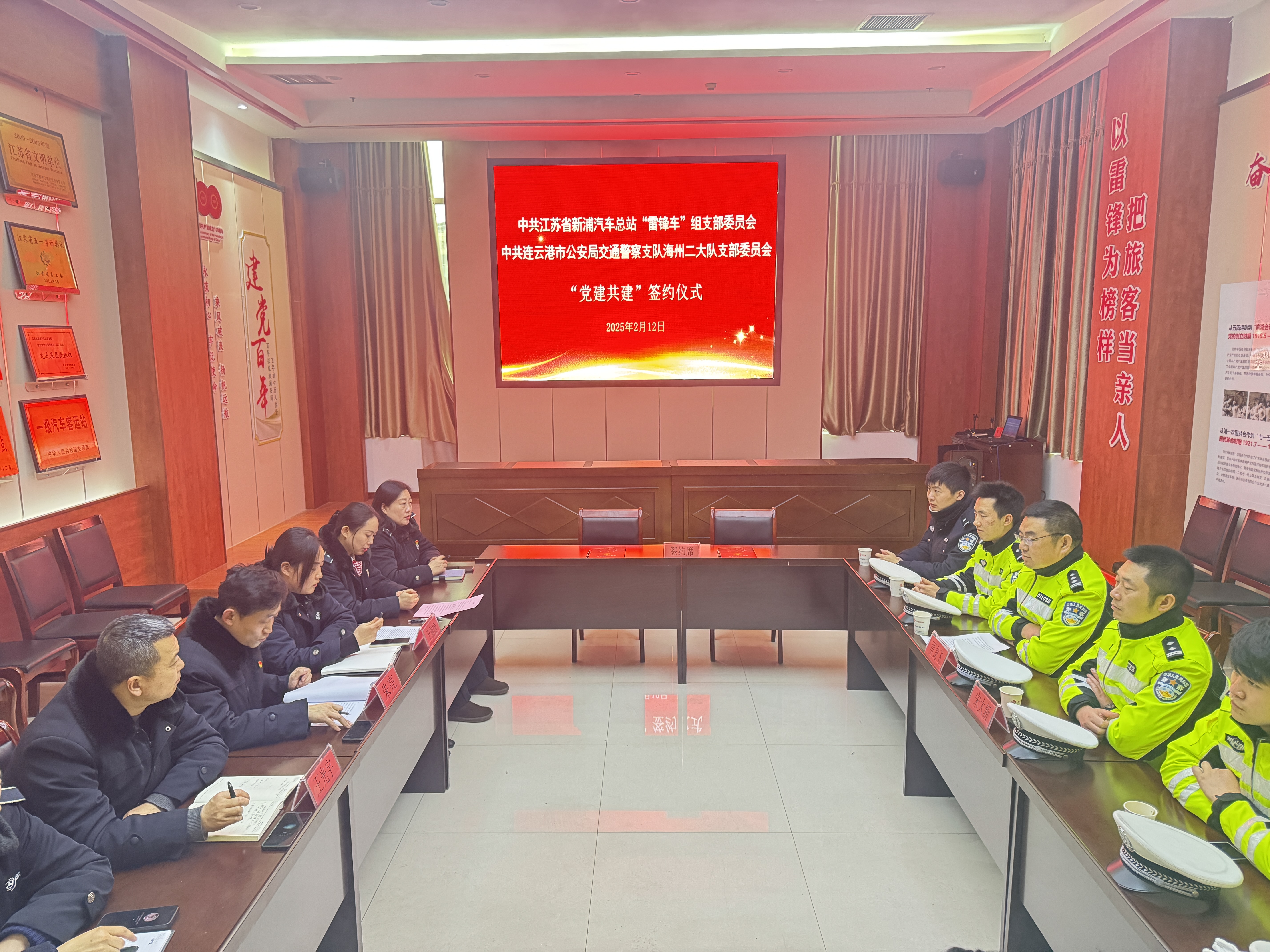 2月12日,连汽新浦汽车总站“雷锋车”组党支部与连云港市公安局交通警察支队海州二大队党支部联合开展了党建共建活动,旨在通过交流合作,共同提升党员队伍素质和服务水平。