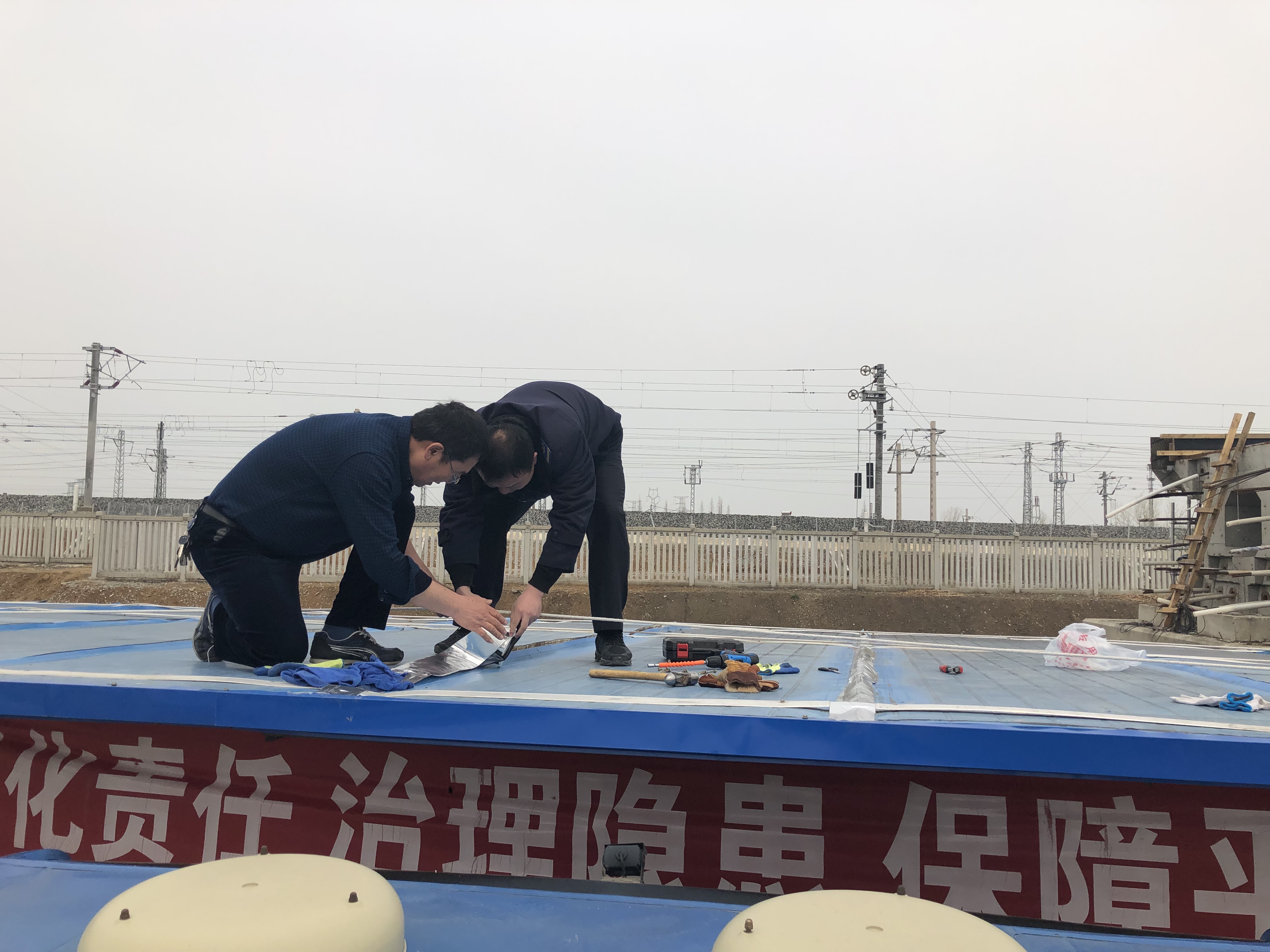 近日,江化北路停车场驾驶员饮水间房顶出现漏雨现象,导致无法正常饮水和午餐。公交博鱼app最新版下载,博鱼(中国)公交事业一部分公司结合实际需求,利用现有资源临时搭建了一个简易饮水间,内部配置了一台微波炉、冰箱和茶水桶,方便驾驶员跑班休息间隙使用。随后,公交事业一部分公司买来防水材料,带领管理人员爬上房顶,对漏雨的屋顶进行防漏施工补救。