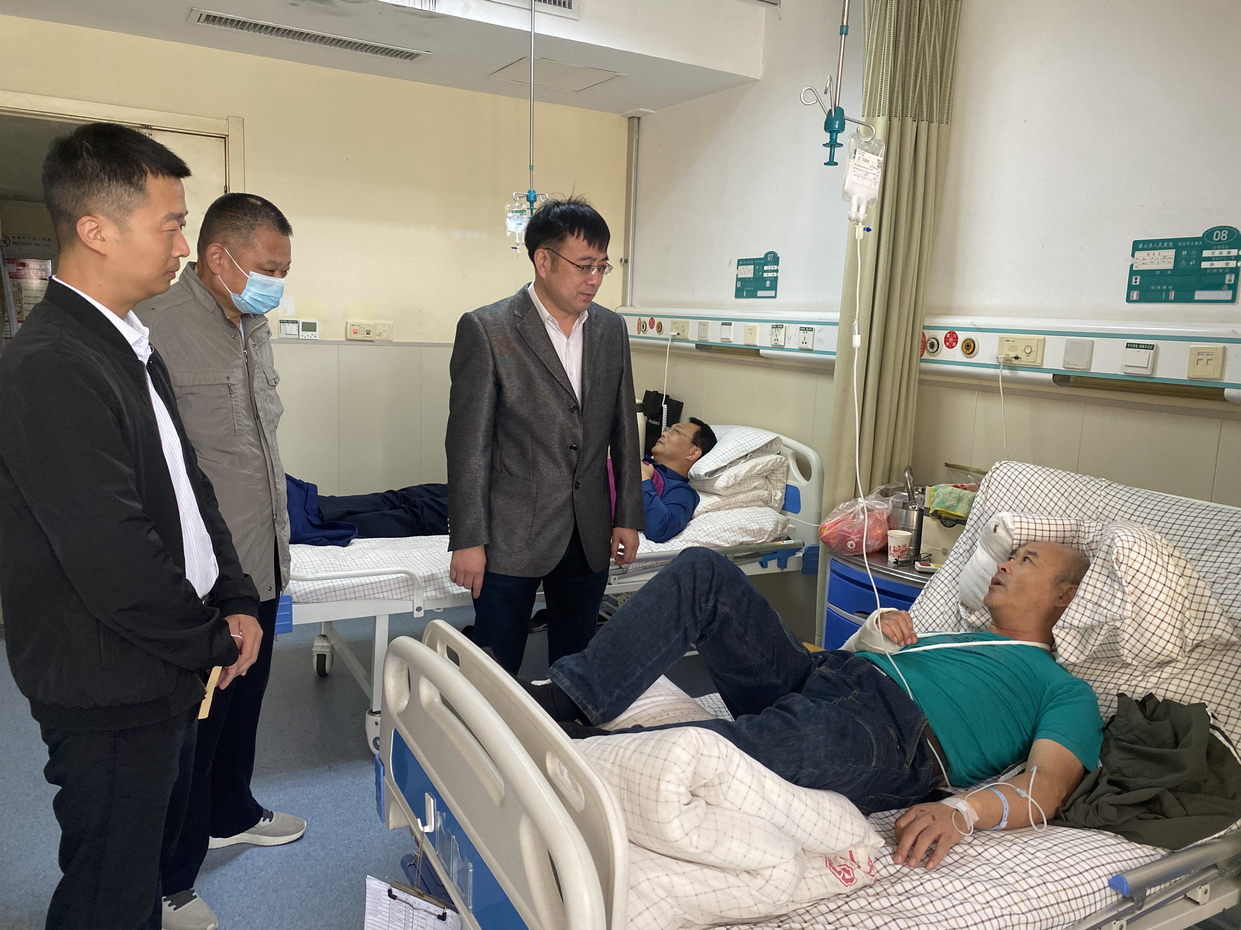 王国余同志是灌云公司经营发展科副科长。前不久,他因为交通事故导致手臂和肋骨多处受伤。这场突如其来的车祸,在对他身体造成巨大伤害的同时,也造成了沉重的心理负担和压力。灌云公司领导班子了解情况后,专程来到医院看望王国余并送上慰问品。张洪伟详细询问了王国余的伤情,叮嘱他要好好修养,争取早日康复。组织的温暖关怀让王国余十分感动,他对公司的慰问表示感谢,并表示会好好调养身体,早日返回工作岗位。