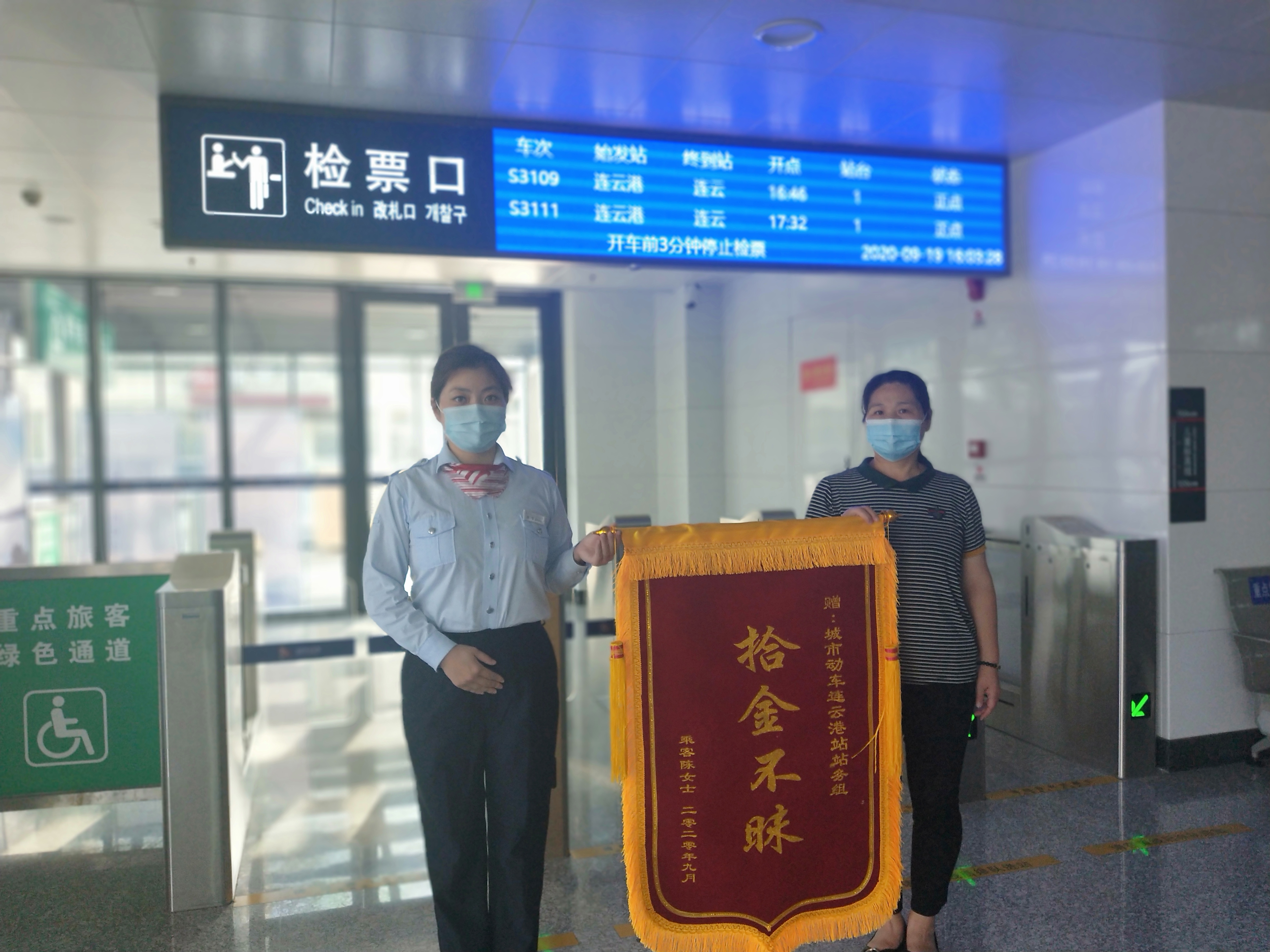 站务员韩雪了解情况后,这位旅客乘坐的车次已经开走,所以她连忙打电话到盐坨站让站务员上车寻找。站务员张送亚每一个角落都不放过,终于在一个座位上找到了包。韩雪立刻将这个好消息告诉这位失主陈女士。陈女士当时激动不已。当天下午,陈女士送来了锦旗表示感谢,激动地握着韩雪的手说:“太感谢你们了,包里现金虽然不多,但是如果银行卡和医保卡丢失,那可就麻烦了。你们城市动车工作人员的工作态度真的让我非常感动。”