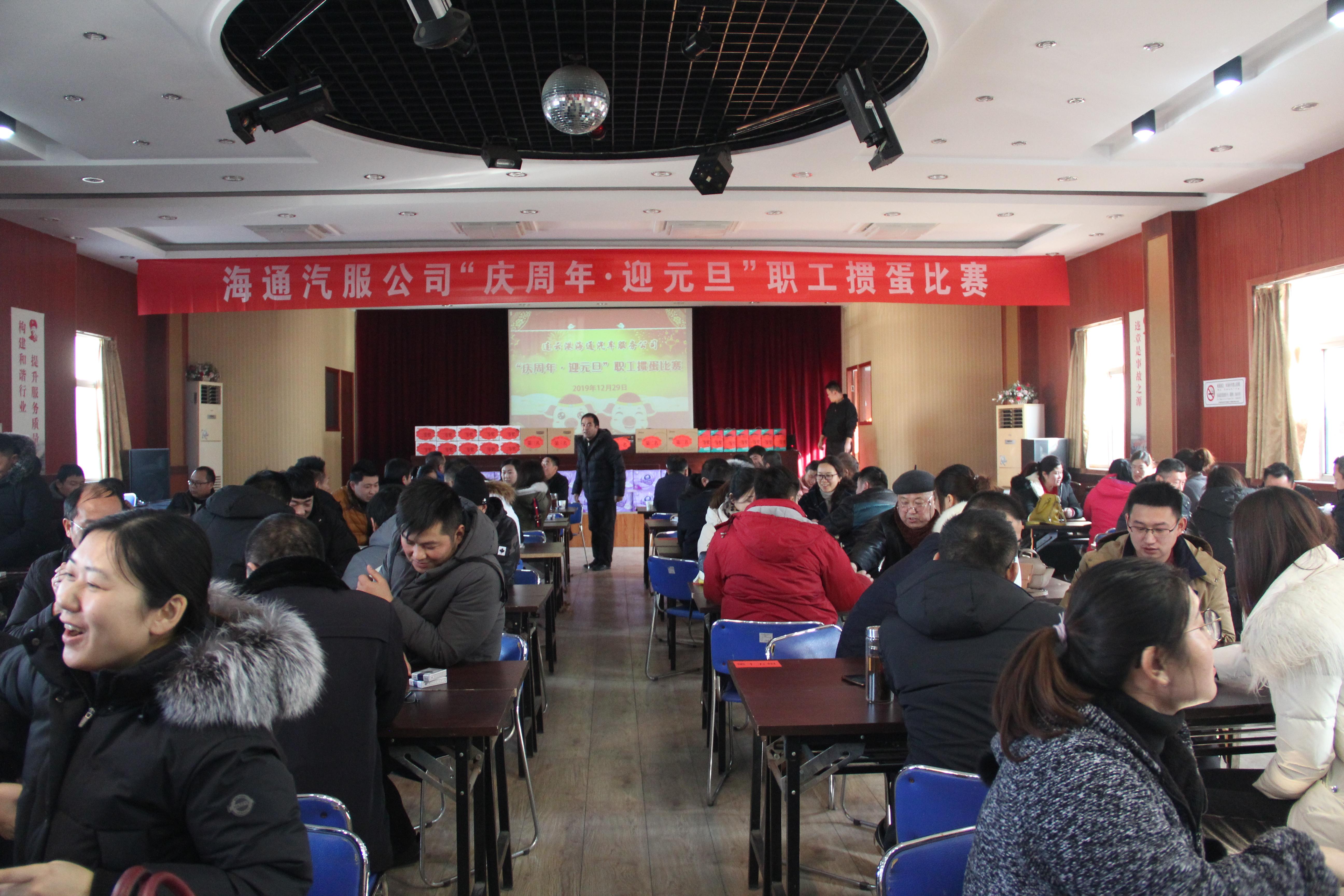 旺狗报喜辞旧岁,金猪纳福迎春来!为庆祝汽服公司成立六周年及迎接2019年元旦的到来,活跃节日气氛,丰富职工的业余文化生活,增进职工之间的友谊,加强职工交流合作能力,汽服公司工会于1229日在连汽出租公司会议室举办了“庆周年·迎元旦”职工掼蛋比赛活动。在公司党委、总经理室的大力支持下,共组织了76名干部职工参与此次活动。