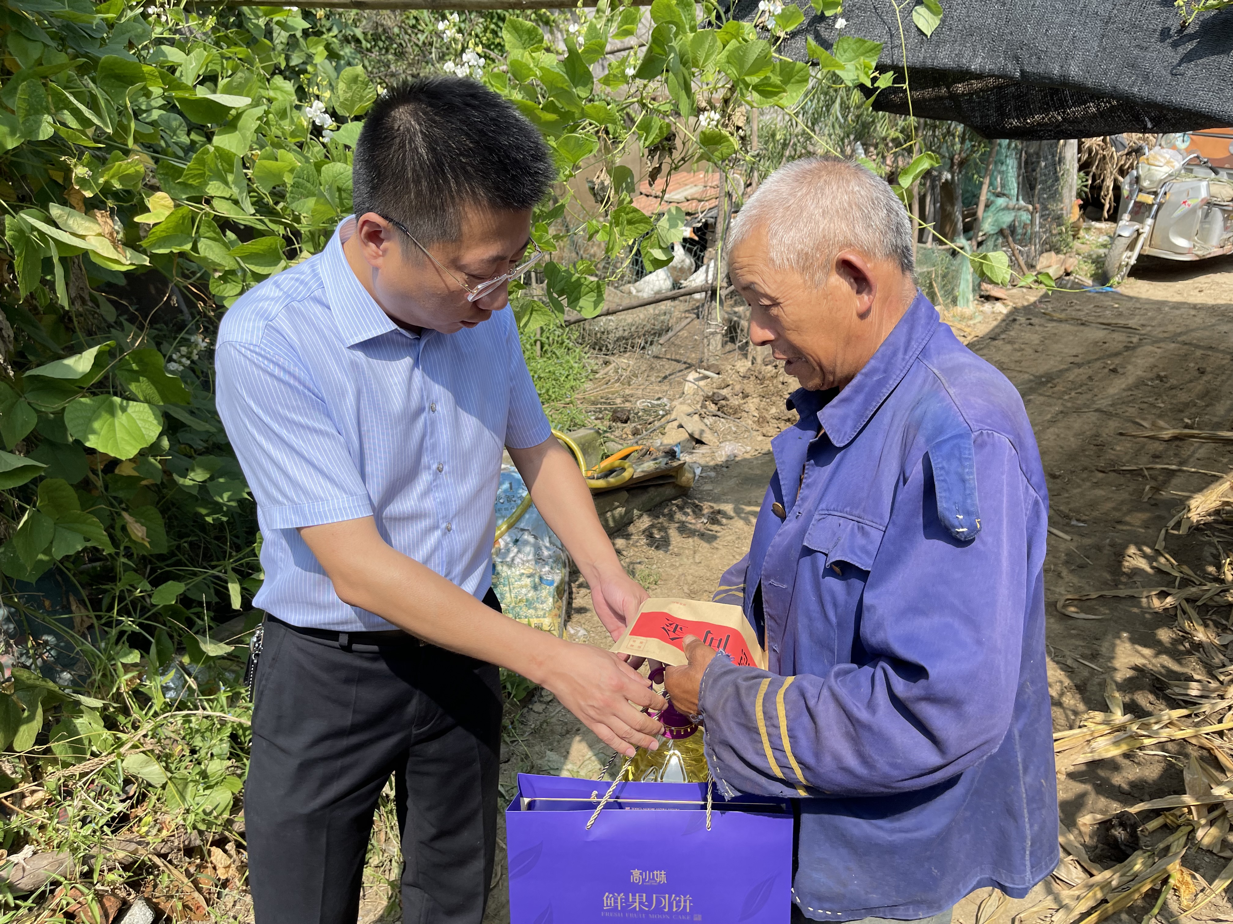 入村后,走访人员逐一深入结对家庭,与他们亲切交谈,话家常、听诉求,并嘱咐他们注意保重身体,也要坚定信心,继续努力,在组织的带领下,进一步改善生产生活,过上幸福安康的日子。随后,走访人员为结对家庭送上慰问金、月饼和食用油等慰问品。廖兴友等结对群众热泪盈眶,拉着大家的手,激动的说“还是社会主义好,还是共产党好,一直记着我们,也感谢海建公司党委多年来对我们的关心和帮助。”