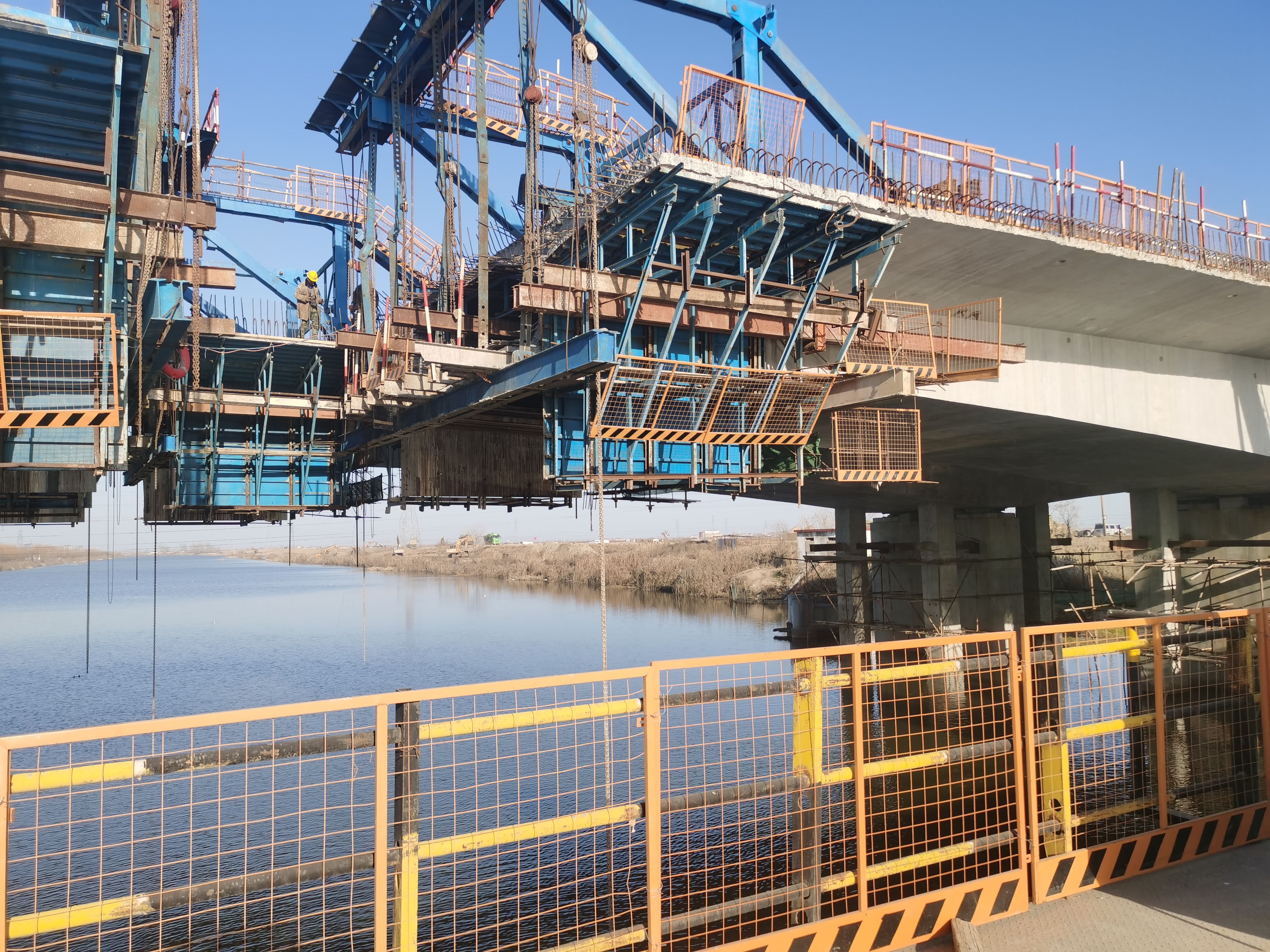 日前,在江苏海建公司402省道赣榆南环段路基桥涵工程施工现场,经过4小时的持续作战,上部结构变截面连续箱梁7#块变截面箱梁梁成功浇筑,这也标志着桥梁施工进入新阶段,为主桥上部结构下一步合拢施工奠定了基础。