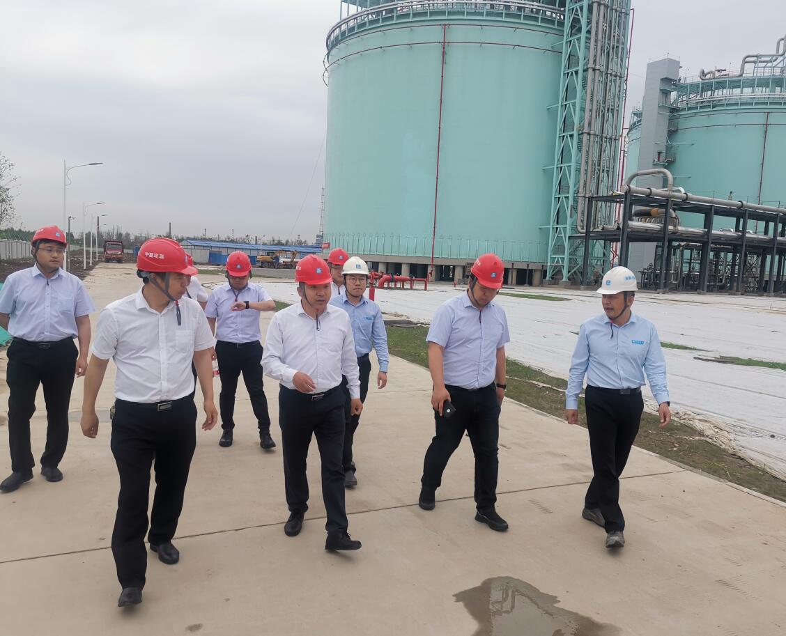 6月4日,物流博鱼app最新版下载,博鱼(中国)党委书记、总经理张国兴,总经理助理陈雷、储备站事业部总经理茆中磊前往中建安装南京滨江LNG储配站调研考察。