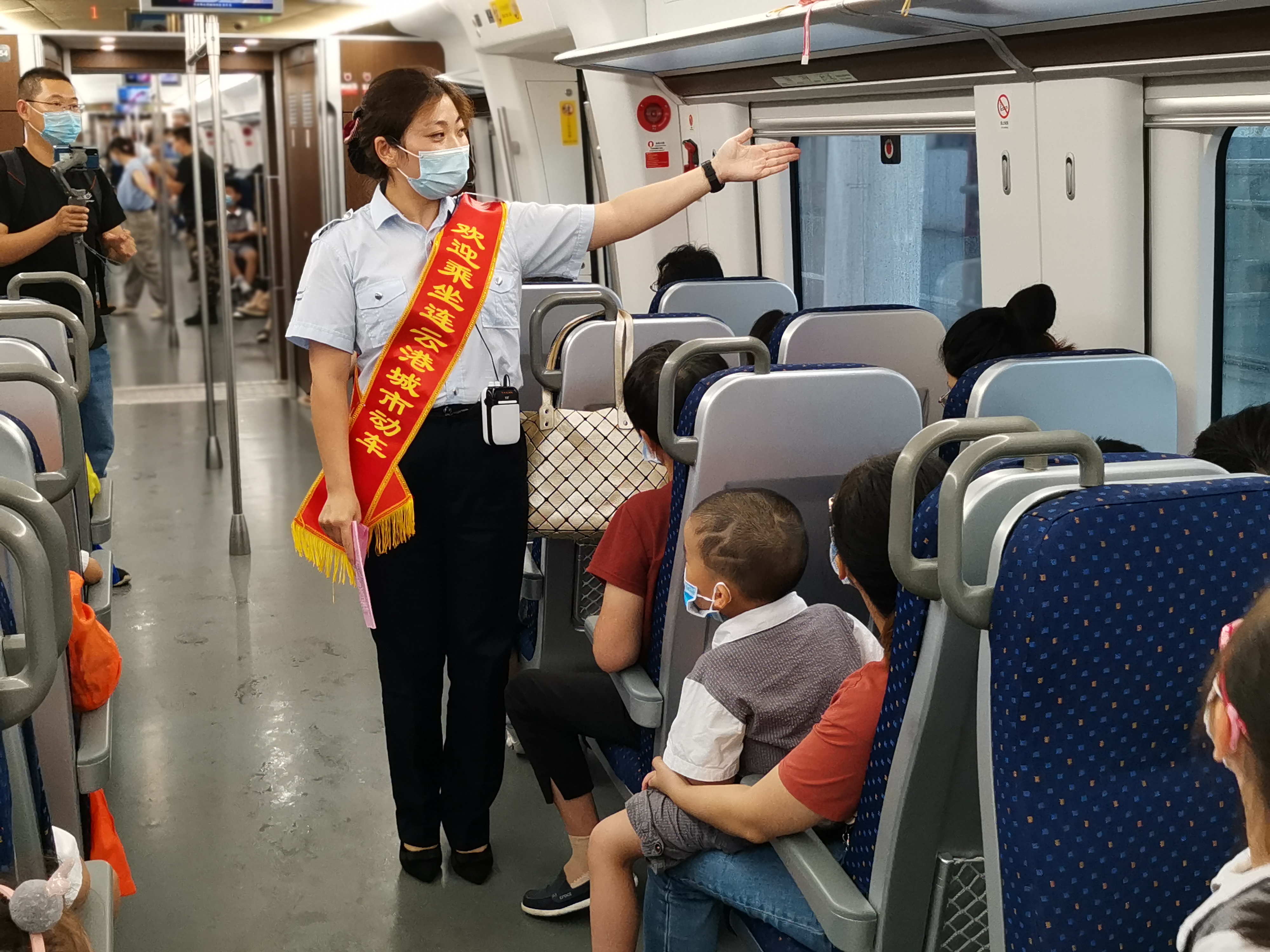 近日,来自连云港市的280余名“交广”小记者开展以“体验动车舒适,感受家乡变化”为主题的城市动车体验活动。按照约定时间,小记者们在城市动车连云港站集合,与家长们一起踏上了开往连云方向的城市动车。当孩子们看见了绘有祥云图案的城市动车时都非常兴奋,家长们也纷纷拿出手机和孩子们拍照留念。