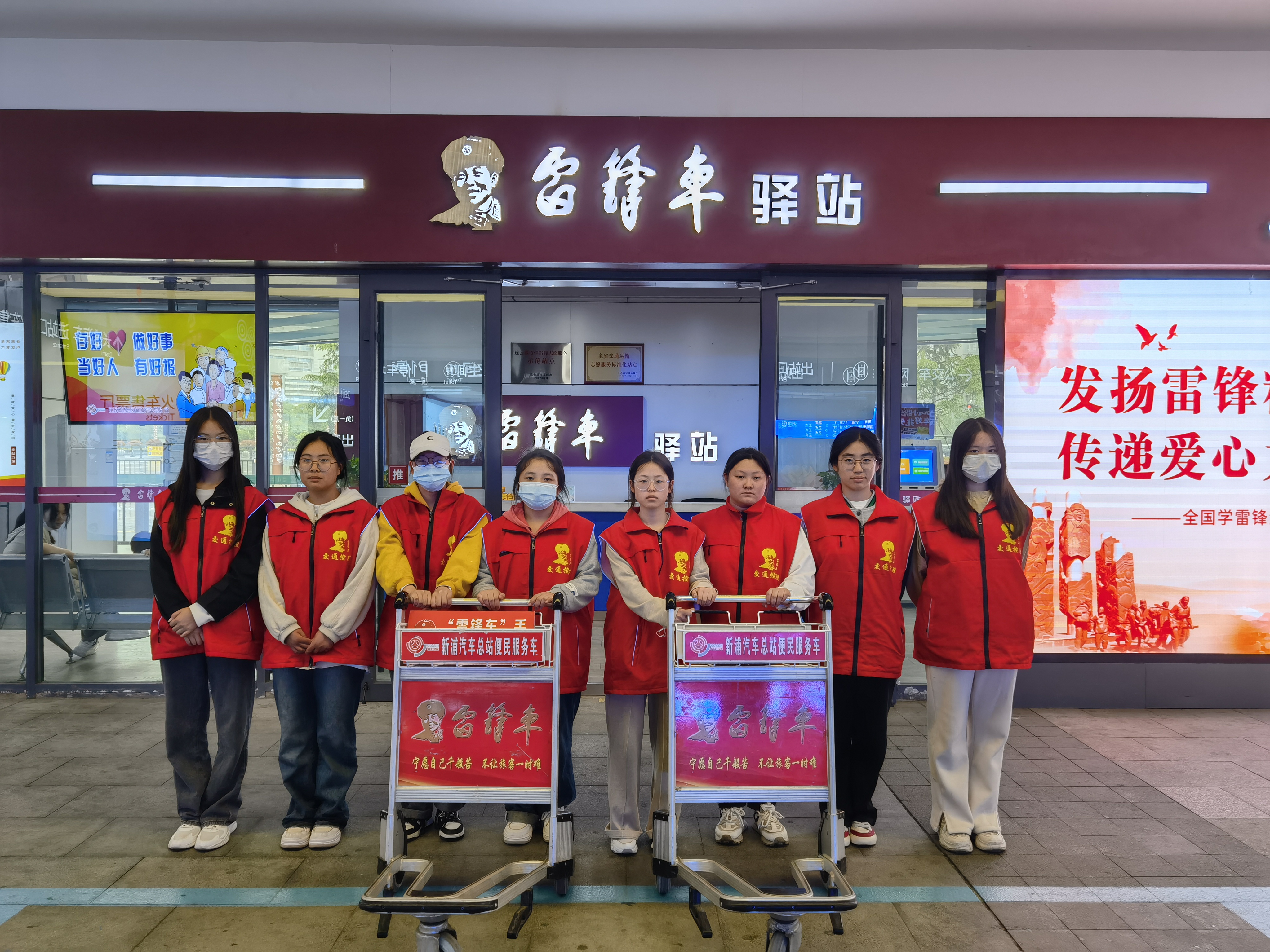 工会小组则充分发挥桥梁纽带作用,加强与高校、企事业单位和社会团体的联系,广泛开展各类志愿服务活动。在“双节”期间,连汽新浦汽车总站与江苏海洋大学、江苏财会职业学院、南京医科大学康达学院三所高校对接,招募假期志愿者,为“雷锋车”驿站注入了新鲜血液。这些志愿者们在驿站工作人员的带领下,搬运行李、出行引导、旅游推荐……他们的加入不仅缓解了驿站的人手压力,更是通过亲身体验加深了对雷锋精神的理解和认同。